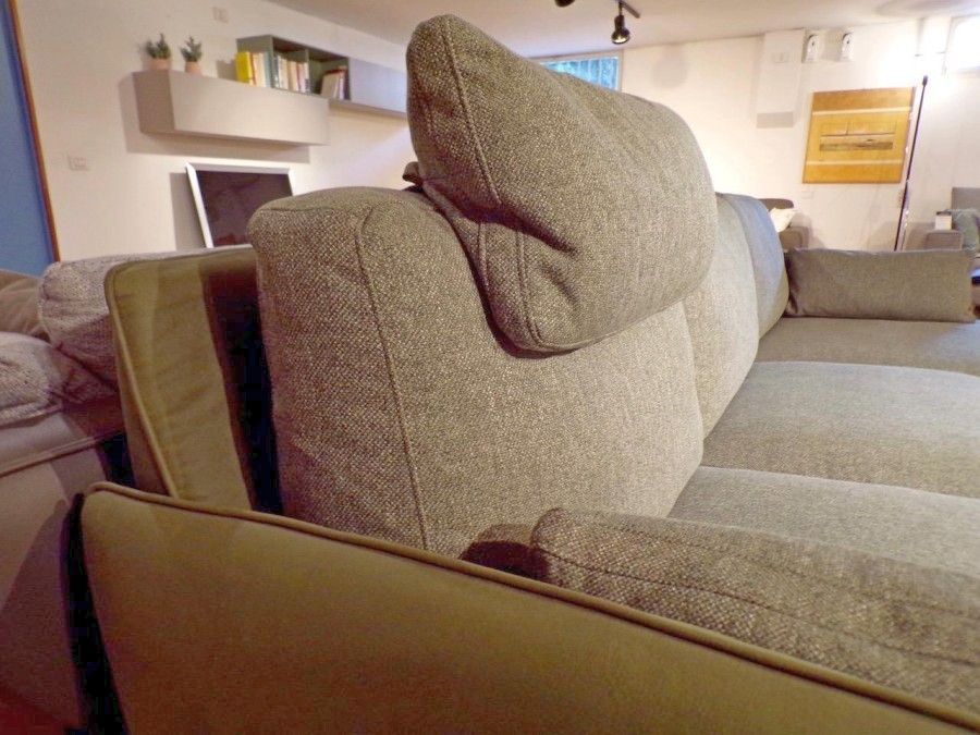 Il divano realizzato con materiali di qualità, presenta delle finiture sartoriali, i piedini in alluminio lo tengono sollevato da terra, per facilitare le pulizie.