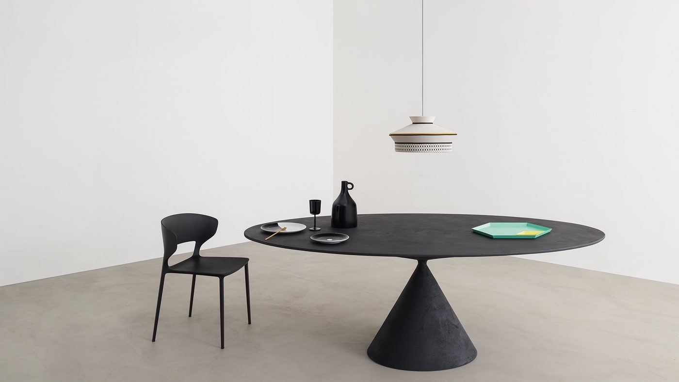 tavolo Clay Desalto ovale nella finitura materica nera spatolato a mano