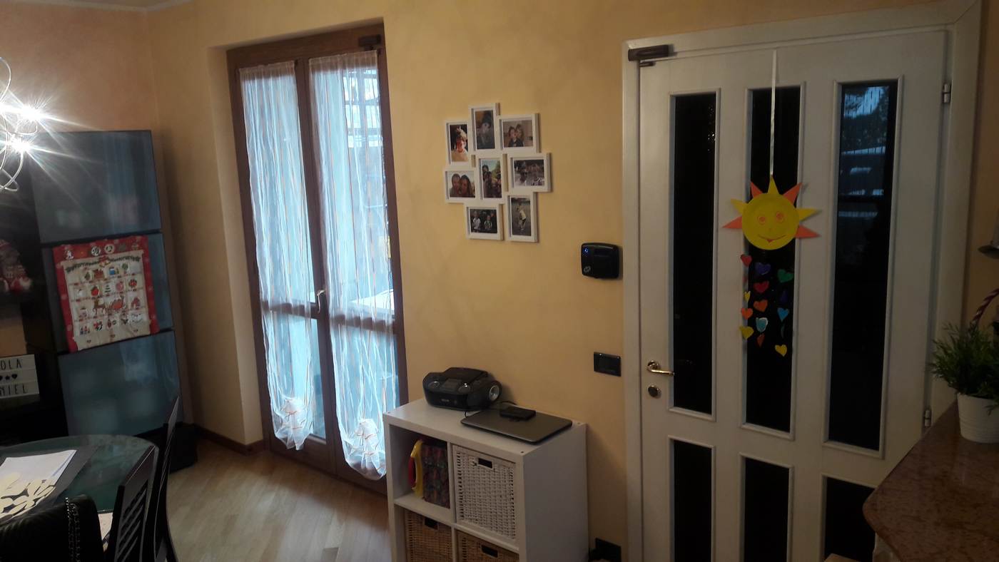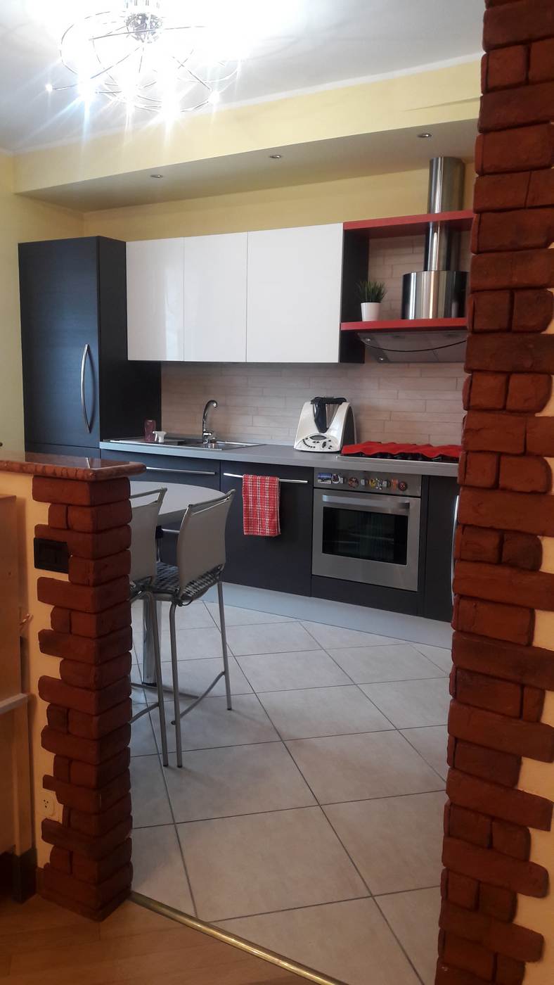 La zona cucina era separata dal soggiorno da un muretto con arco in mattoni, il pavimento era differente tra le due zone.